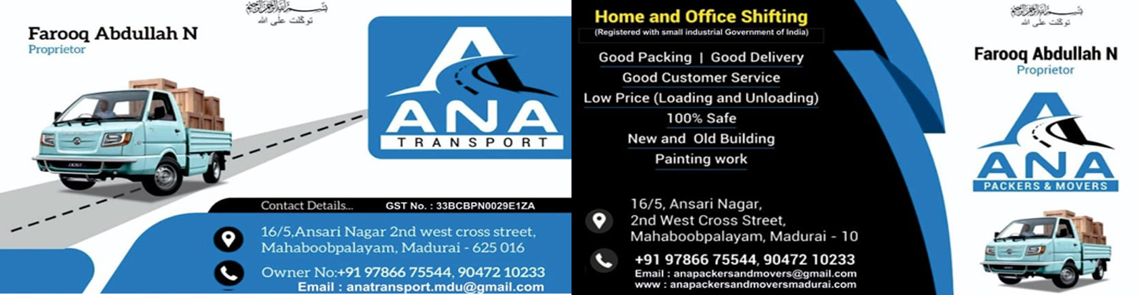 ANA Packers And Movers at Mahaboob palayam In Madurai, has a wide range of products and services to cater to the varied requirements of their customers. Ana Packers and Movers is Provides Best Services/products Such as Packers And Movers, Packers And Movers (All India),Packers And Movers (Within City), Packers And Movers For Shipping Industry (Within City), Packers And Movers For Commercial, for the product or service with ease by using any of the available modes of payment, such as Cash/Cheque/Online.
