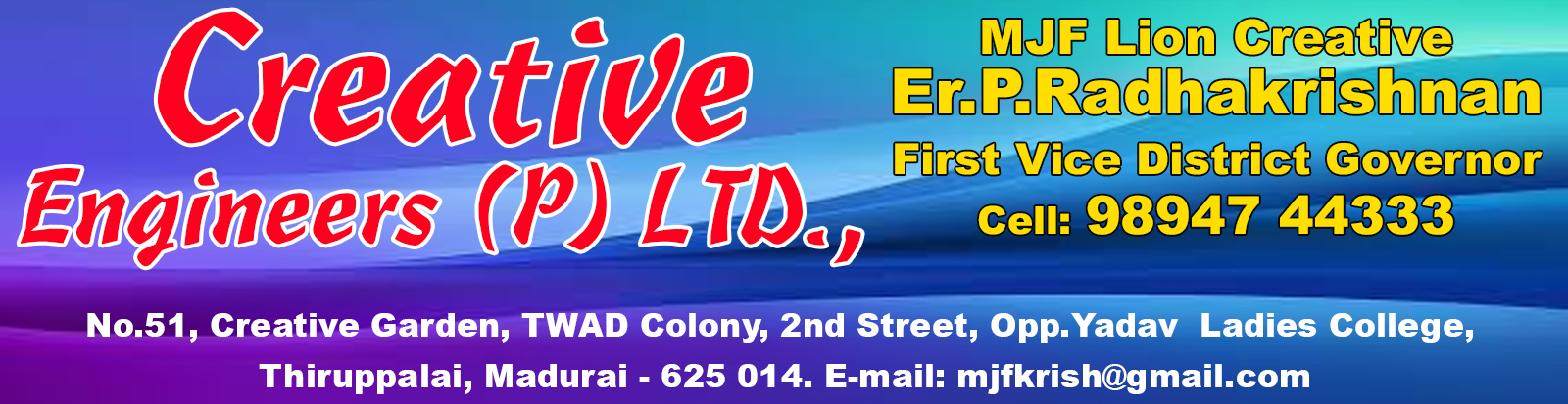 Address : No.51, Creative Garden, TWAD Colony, 2nd Street, Opp.Yadava Ladies College,, Madhurai, Tamil Nadu, Pincode : 625014