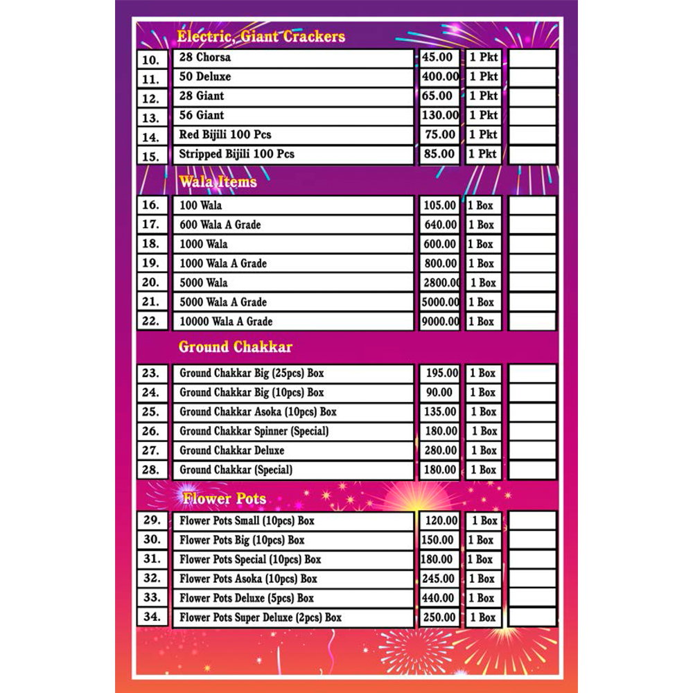 Products and Services offered: Five Star Crackers in Virudhunagar HO has a wide range of products and / or services to cater to the varied requirements of their customers. The staff at this establishment are courteous and prompt at providing any assistance. They readily answer any queries or questions that you may have. Pay for the product or service with ease by using any of the available modes of payment, such as G Pay. This establishment is functional from Open 24 Hrs - Open 24 Hrs.