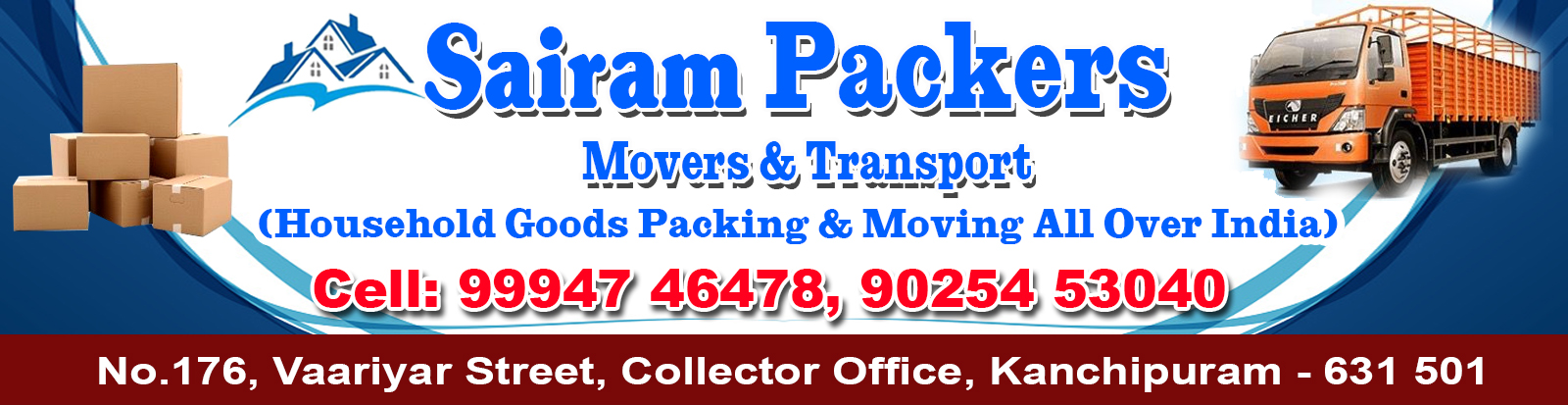 Sai Ram Packers Movers Transport in Kanchipuram is one of the leading businesses in the Packers And Movers. Also known for Packers And Movers, Packers And Movers (All India), Packers And Movers (Within City), 24 Hours Packers And Movers, Packers And Movers For Household Item, Packers And Movers For Household Item (Within City), Packers And Movers For Household Item (All India), Packers And Movers For Chennai and much more.Sai Ram Packers Movers Transport in Kanchipuram HO has a wide range of products and / or services to cater to the varied requirements of their customers. The staff at this establishment are courteous and prompt at providing any assistance. They readily answer any queries or questions that you may have. Pay for the product or service with ease by using any of the available modes of payment, such as Cash. This establishment is functional from Open 24 Hrs - Open 24 Hrs.