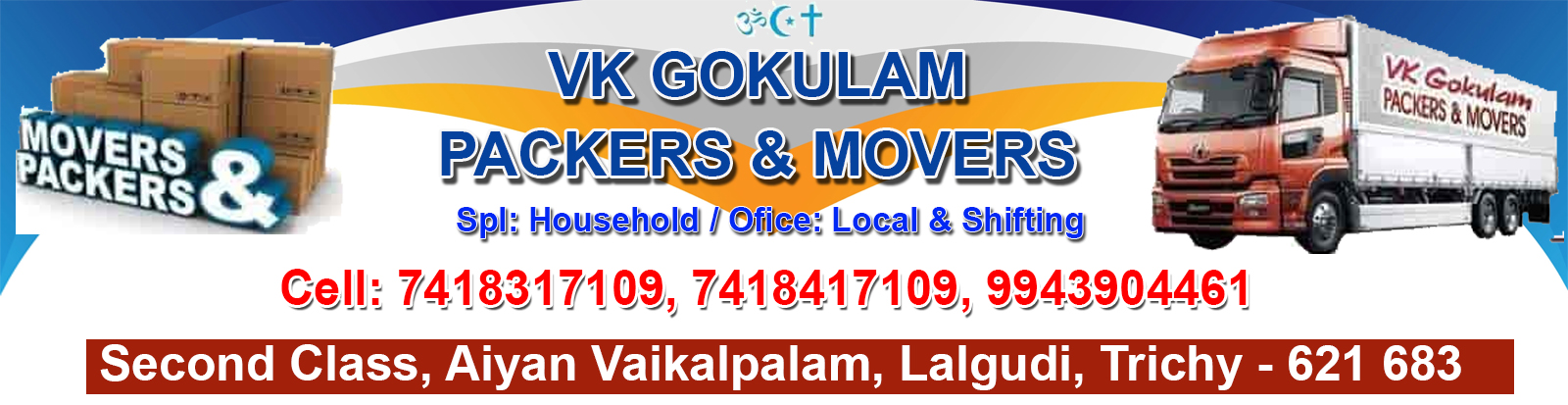 VK Gokulam Packers & Movers in Trichy is one of the leading businesses in the Packers And Movers. Also known for Packers And Movers, Packers And Movers (All India), Packers And Movers (Within City), 24 Hours Packers And Movers, Packers And Movers For Automobile, Packers And Movers For Household Item, Packers And Movers For Household Item (All India),Packers And Movers For Tamilnadu, Packers And Movers For Commercial.VK Gokulam Packers & Movers in Lalgudi has a wide range of products and / or services to cater to the varied requirements of their customers. The staff at this establishment are courteous and prompt at providing any assistance. They readily answer any queries or questions that you may have. Pay for the product or service with ease by using any of the available modes of payment, such as Cash, G Pay, IMPS, NEFT, Paytm, PhonePe, RTGS, UPI. This establishment is functional from 00:00 - 23:59.
